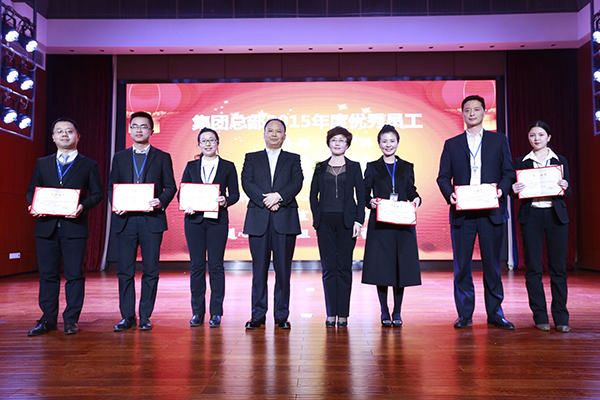 劉主席和禚總為2015年度集團總部優(yōu)秀員工頒獎并合影