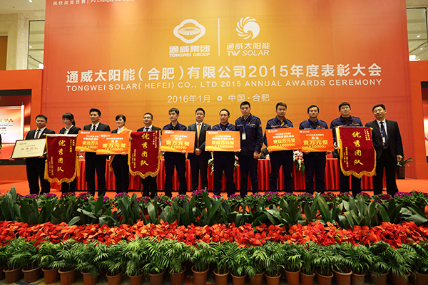 2015年對(duì)通威太陽(yáng)能(合肥)有限公司而言是不平凡的一年,是全公司上下齊心、奮力拼搏、創(chuàng)造輝煌的一年,也是各項(xiàng)工作齊頭并進(jìn)、全面發(fā)展、全面豐收、全面提升的一年。公司全體同仁在面對(duì)各種挑戰(zhàn)時(shí),迎難而上,在產(chǎn)能發(fā)揮、銷售出貨、成本控制、技術(shù)創(chuàng)新等方面取得了令人矚目的成績(jī)。2015年更是合肥公司具有里程碑意義的一年,公司一舉成為光伏行業(yè)全產(chǎn)業(yè)鏈中的優(yōu)秀企業(yè)。在取得階段性成績(jī)的同時(shí),通威太陽(yáng)能電池片板塊在2016年將面臨更大的挑戰(zhàn),但只要所有人放平心態(tài)、認(rèn)清自我、腳踏實(shí)地、持之以恒,用心工作、用智慧工作、用只爭(zhēng)朝夕的精神工作,就一定能夠再創(chuàng)佳績(jī)!