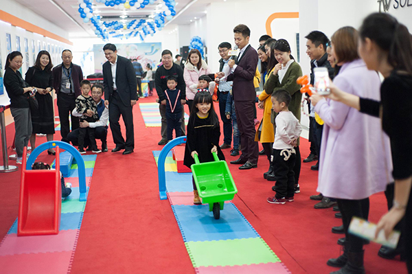 活動正式開始前,公司還特別安排了展廳介紹及電池一廠P2車間參觀環(huán)節(jié),讓員工家屬們了解公司概況及生產(chǎn)工藝流程。下午2點38分,通威太陽能(合肥)公司工會主席翟緒錦上臺致辭,并代表公司工會對家屬們致以最熱烈的歡迎。隨后,謝董事長及公司高管隆重揭幕,首屆家庭同樂日正式開始。