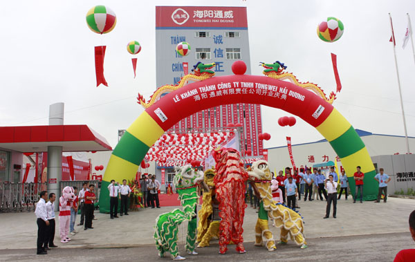 理念,歷時10個月,圓滿完成任務,并于2012年6月3日迎來了生產線的順利投產。與此同時,全體海陽通威人堅持“誠、信、正、一”的文化理念,堅持“速度、效率與發展”的經營方針,先后加速完成了團隊組建、市場調研、產品定位等基礎性工作。產品投放市場后,堅持“為客戶創造利益最大化”的營銷理念,以養殖示范為基礎,大力推廣通威營銷模式和養殖模式,于2012年8月25日完成全年銷售任務,成績喜人。希望全體海陽通威人以開業慶典為契機,遵守越南法規,確保公司合法經營、誠信經營、有效經營、良性發展,為越南海陽省的經濟發展不斷做出更大的貢獻。