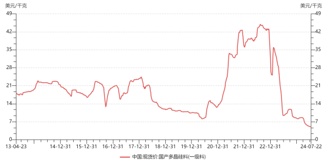 首先是產業鏈的價格信號。在目前價格水平下,硅料、硅片、電池均處于虧現金成本的狀態,以多晶硅價格為例,經過2023年急跌和2024年上半年的磨底,當前已經處于企穩狀態。展望后續,隨著行業內產能出清以及需求旺季來臨,價格有望改善。
