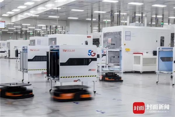 2016年,通威便開始了對智能化車間的探索。漆剛告訴記者,最初,生產線是靠人力去拉車傳輸物料。后來,通威開始探索“機器代替人工搬運重物”的生產方式。在2021年規劃金堂基地時,通威就采用了最先進的自動化設備和通信技術。“在我們基地,人力不再需要用來搬運重物以及進行重復性的勞動,而更多的是要設備維護、把控質量等。不僅如此,機器還完全降低了人為干擾的因素,生產精確度幾乎能做到零失誤。”如今5G光伏智能制造在金堂基地作為示范項目取得了顯著成效,將逐步推廣到其他基地。