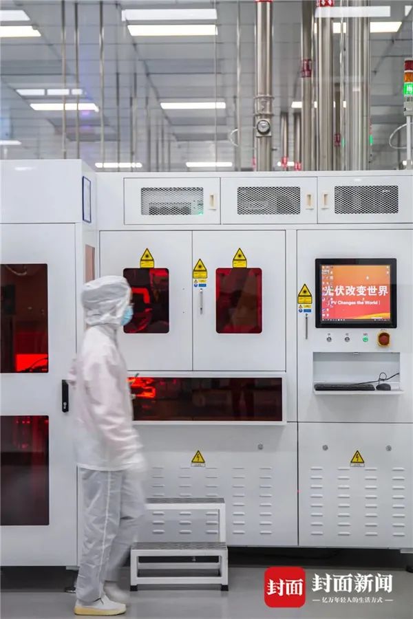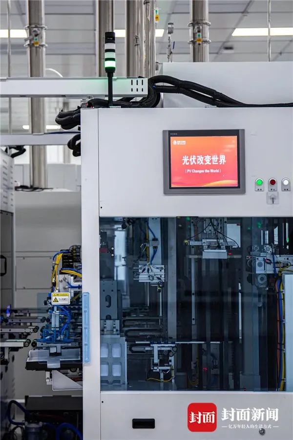 4月14日,封面新聞記者實地探訪通威太陽能(金堂)有限公司,在長達300米生產線上,上百臺機器像一支訓練有素的軍隊,列隊整齊,根據自己的分工進行有序的忙碌。