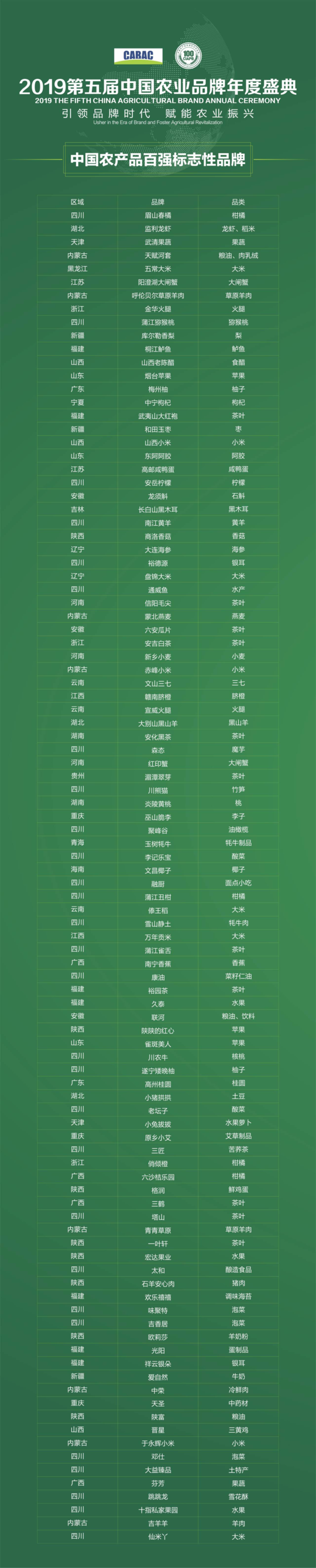 今年首次發布“中國農產品百強標志性品牌”榜單。活動主辦方負責人表示,該榜單意在樹立農業品牌榜樣標桿,傳遞中國農業品牌正能量。