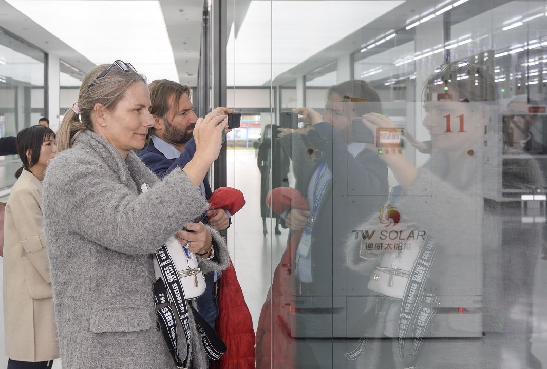 通威太陽能智能工廠無人車間給海外媒體記者們帶來了非常大的震撼,在此之前,他們無法想象這樣龐大產能的工廠是如何實現高效運轉的。