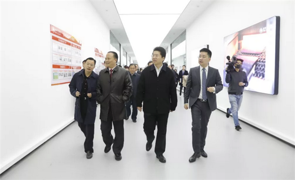 劉漢元主席陪同曹俊杰副市長一行參觀通威太陽能三期項目生產車間