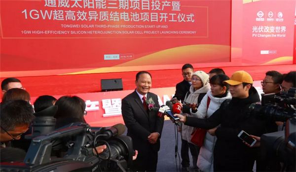 曹俊杰副市長宣布通威太陽能三期項目投產暨1GW超高效異質結電池項目開工