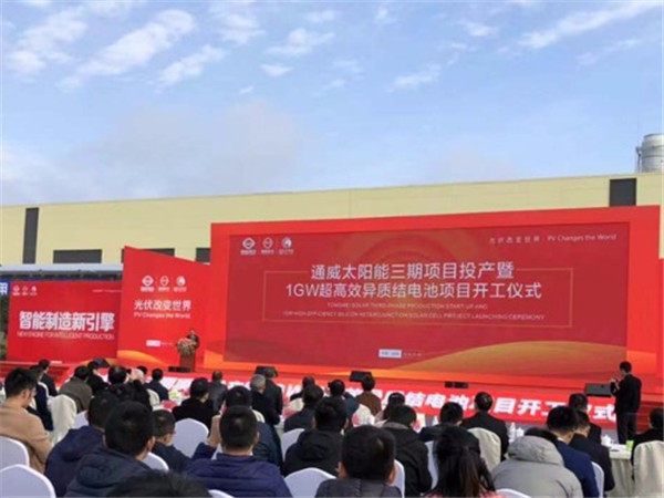 11月18日,通威太陽能三期項目投產暨1GW超高效異質結電池項目開工儀式在成都雙流舉行。