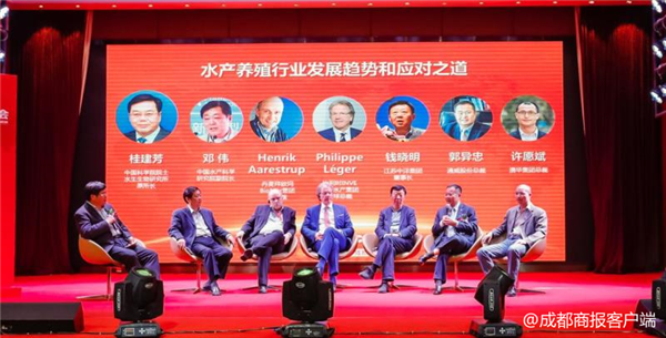 在桂建芳院士主持的圓桌對(duì)話環(huán)節(jié),中國(guó)水產(chǎn)科學(xué)研究院副院長(zhǎng)鄧偉、丹麥拜歐瑪集團(tuán)副總裁Henrik、比利時(shí)英偉水產(chǎn)集團(tuán)全球總裁Philippe Léger、江蘇中洋集團(tuán)董事長(zhǎng)錢曉明、通威股份總裁郭異忠、澳華集團(tuán)總裁許愿斌等嘉賓,圍繞水產(chǎn)行業(yè)發(fā)展趨勢(shì)和應(yīng)對(duì)之道展開“論劍”,新思路、新觀點(diǎn)的智慧碰撞引發(fā)現(xiàn)場(chǎng)熱烈掌聲。