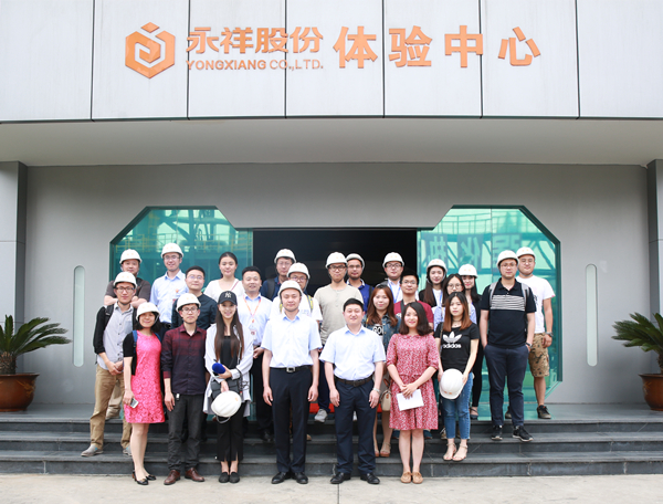 媒體記者們在永祥股份體驗(yàn)中心前合影留念