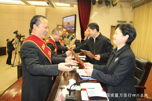 四川省省長魏宏(中)親自到場頒獎并與獲獎企業(yè)合影留念。