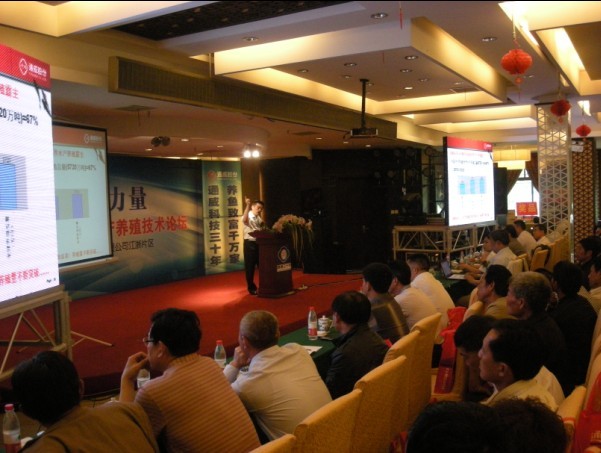 傳媒湖州網(wǎng)5月25日訊(記者:陳雯)今天下午1點(diǎn)30分,由通威股份有限公司江浙區(qū)主辦的“2012通威湖州水產(chǎn)養(yǎng)殖技術(shù)論壇”在湖州荻港魚(yú)莊舉行。記者在現(xiàn)場(chǎng)看到,活動(dòng)現(xiàn)場(chǎng)座無(wú)虛席,有來(lái)自湖州菱湖、荻港、下昂等400多名使用通威飼料的水產(chǎn)養(yǎng)殖戶參加了此次論壇,現(xiàn)場(chǎng)氣氛十分活躍。