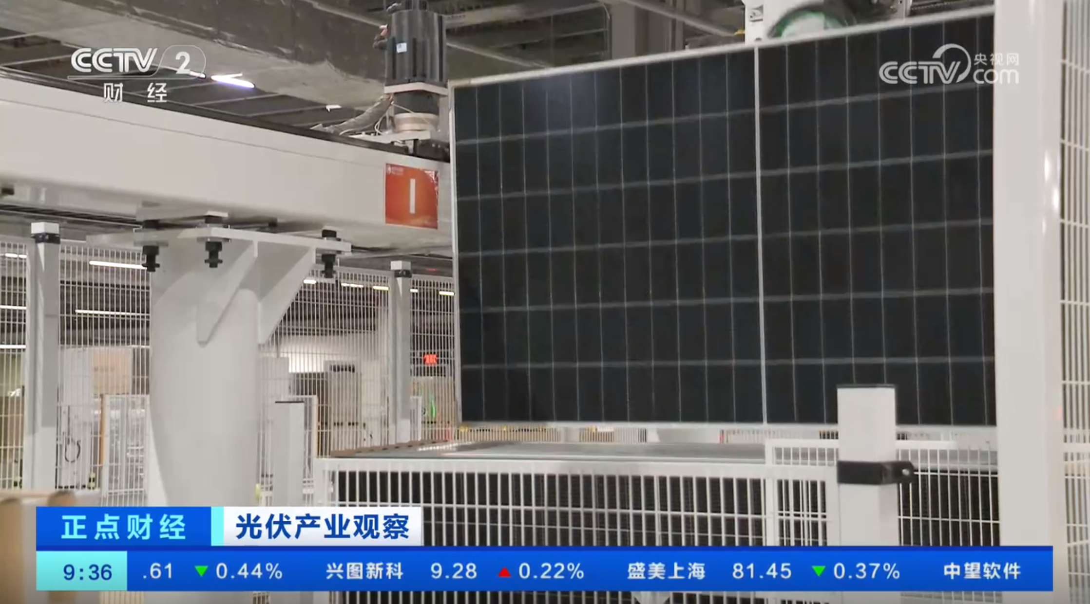 央視CCTV-2《正點財經》欄目播出通威組件智能制造生產車間畫面